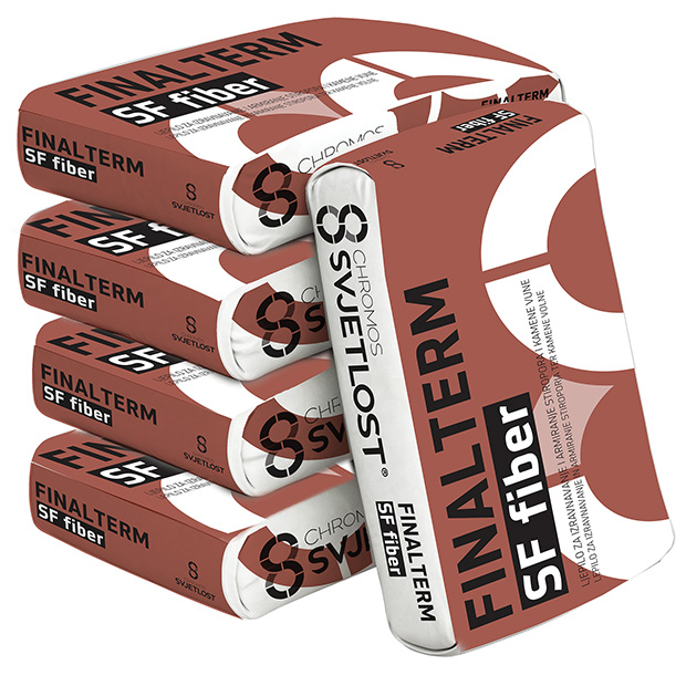FINALTERM SF FIBER je sivi mort za lijepljenje, armiranje i gletanje termoizolacijskih ploča od mineralne kamene vune, ekspandiranog i ekstrudiranog polistirena. Izrađeno je na bazi prirodnih mineralnih veziva, punila granulacije 0,6 mm, odgovarajućih aditiva i polipropilenskih vlakana.